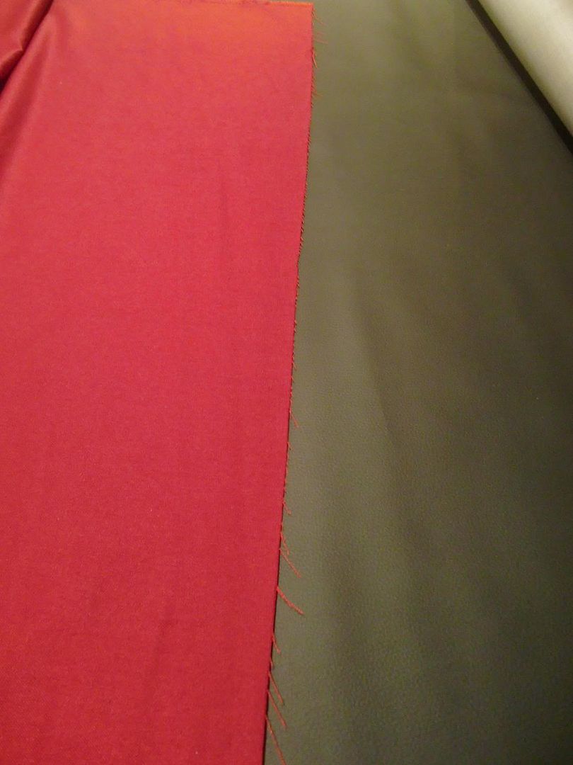 Vaikka kankaat onkin jo ostettu niin suosittelen silti miettimään että teet penkin keskiosat punaisen sijaan mustalla kankaalla tai sitten mustalla kankaalla jossa on jotain punaisia hiusviiva tjms. kuvioita. Ovipahvit annat olla kokonaan mustana tai sitten niihinkin sitä mustapunaista kangasta keskustaan.