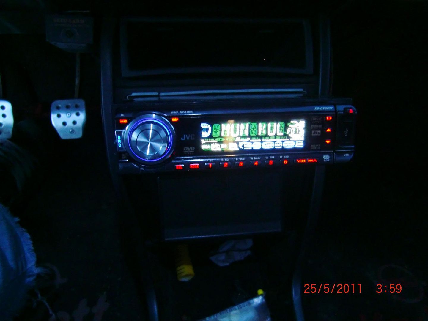 Tänään tuli innostus alkaa asentelemaan soitinta autoon, että pystyy musiikkia kuuntelemaan ja sain jopa sen verran piuhoja mankalle vedettyä, että siihen sai virrat päälle, tässä vähän todistusaineistoa: