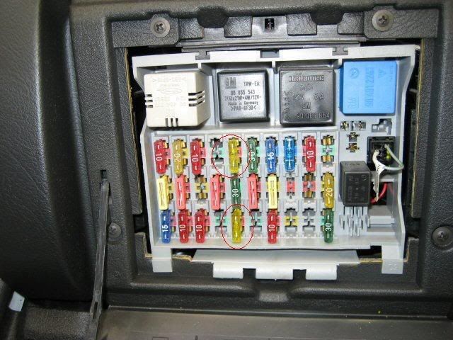 - Lopuksi sarjan ohjeiden mukaisesti ajovalojen 10A:n sulakkeet piti vaihtaa 20A:n sulakkeisiin (ympyröidyt sulakepaikat 5 ja 25).