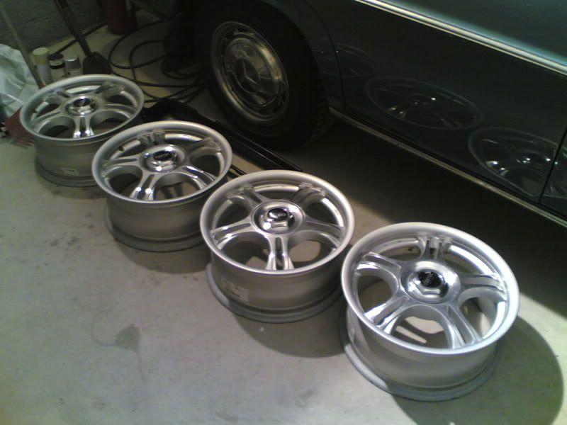 Mutta suurempana edistyksenä, (ainakin itselle) sain vanteet lopullisesti valmiiksi tänään. Kävin ruikkimassa maalit ja lakat päälle, sekä tietenki räpsäsin kuvan niistä teille katseltaviksi.