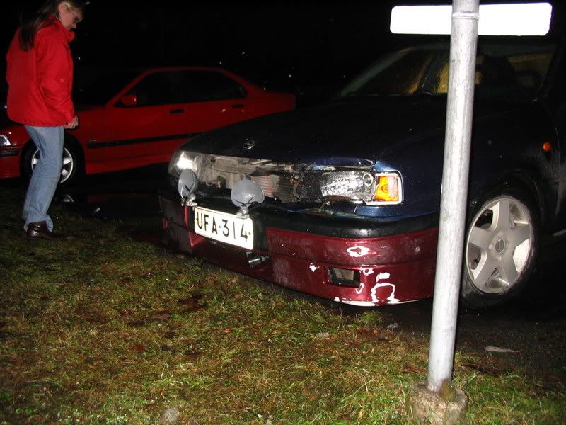 On tuossa kyllä vähän uusimista, konepelti, umpio(t), vilkku, lisävalot, maski, syyläri, umpioiden alus pelti, vasen etusiipi, ehkä konepellin lukkopelti yms. + maalausta.