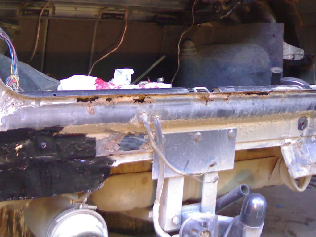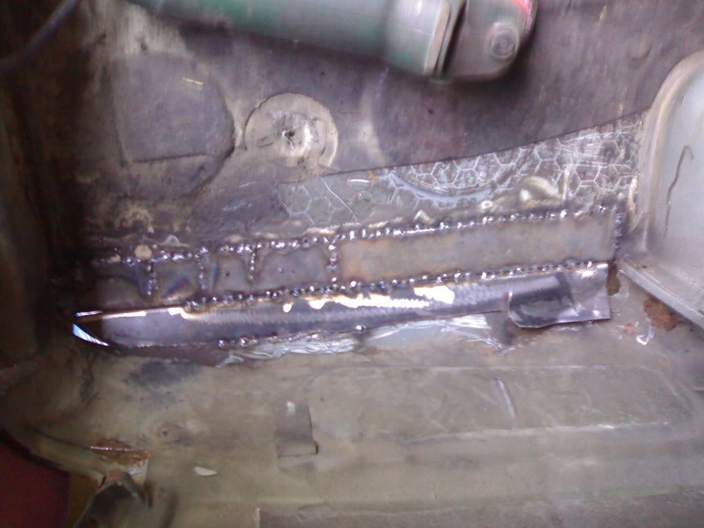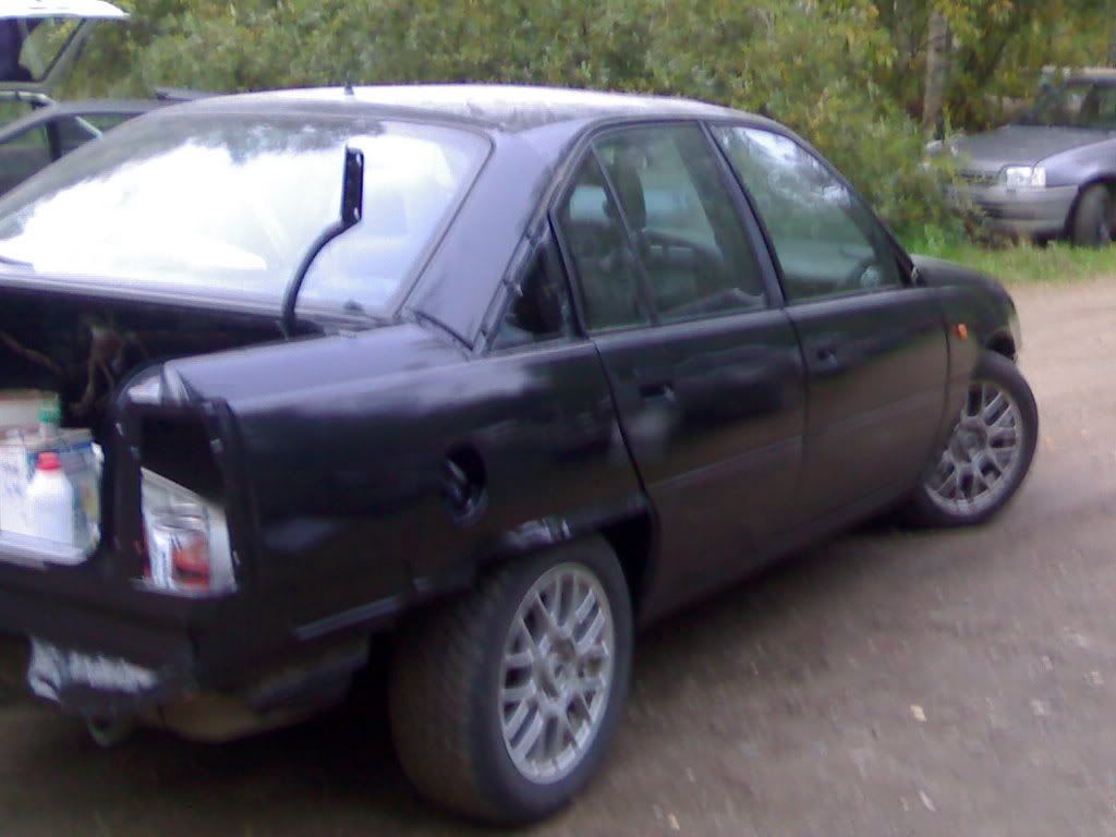 Kaaret jätettiin suoraksi mutta pellitettiin uudestaan koska ne olivat niin mädät.. Mulla oli kiire auton kanssa niin ei malttanu tehdä pyöreitä kaaria.. (ehkä joskus sitten) :lol: Helmat hiottiin, massattiin ja maalattiin koska entinen omistaja tai joku oli turannut helmat päin Helvxxxxä, hitsannut miten sattuu ja jättänyt sauman ihan näkyville eikä ollut hionut mitenkään vaan vetänyt kylmänviileesti tervaa helmoihin.. :evil: Pohjasta paikkailtiin muutama reikä muuten pohja oli ihan hyvässä kunnossa... Takakontti olikin sitten ihan läpimätä tiivisteiden alta, varapyöräkotelosta ja toiselta sivulta kanssa! Peltiä meni varmaan neliön verran plus takakontin reuna mikä laikattiin munamallin kadetista ja istutettiin paikalleen koska niin oli helpompi tehdä kuin ruveta taittelemaan uutta kappaletta..(ihmeteltiin kesällä et mistä puhaltaa hiekkaa takakonttiin ihan hirveesti... :lol: :lol: :lol: )