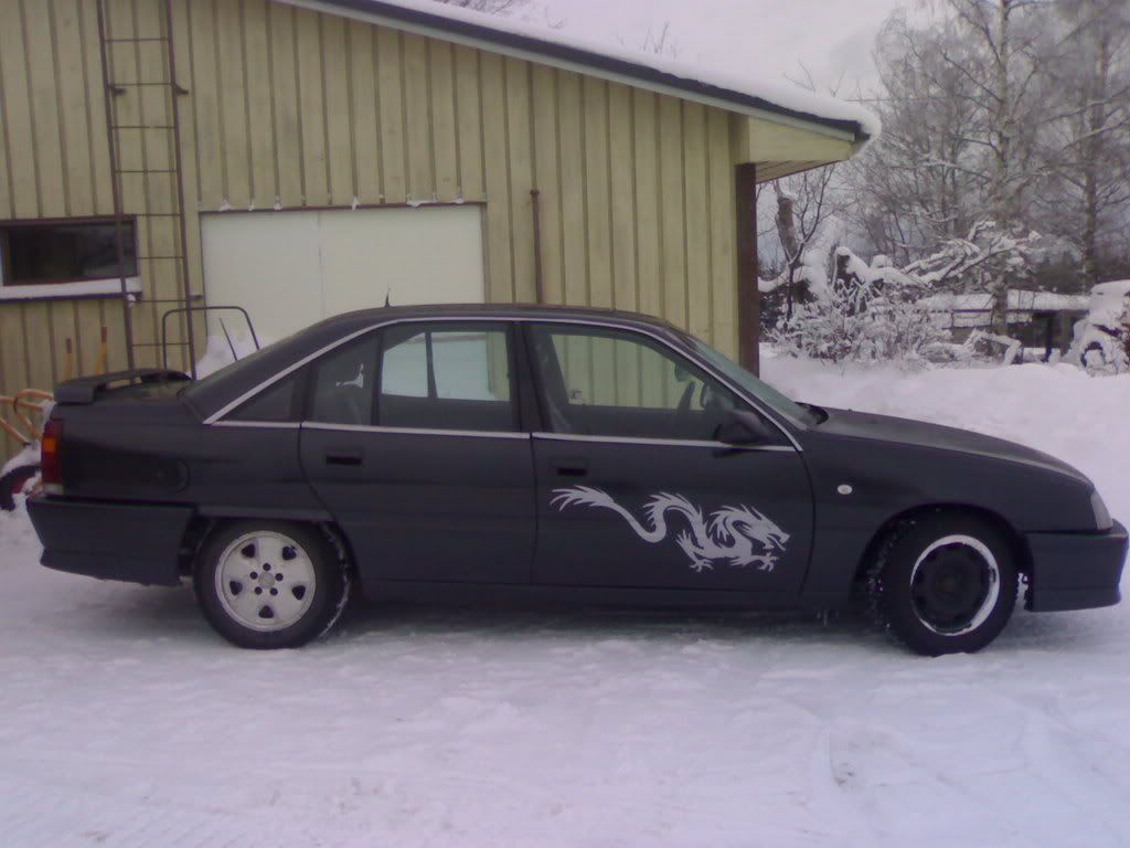 Kylkiin laitettiin hopeat lohikäärme tarrat ja takalasiin teksti: Oikeat pyörät vetävät!