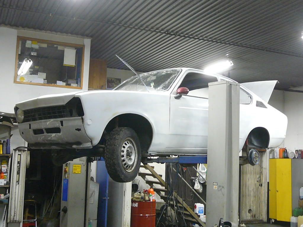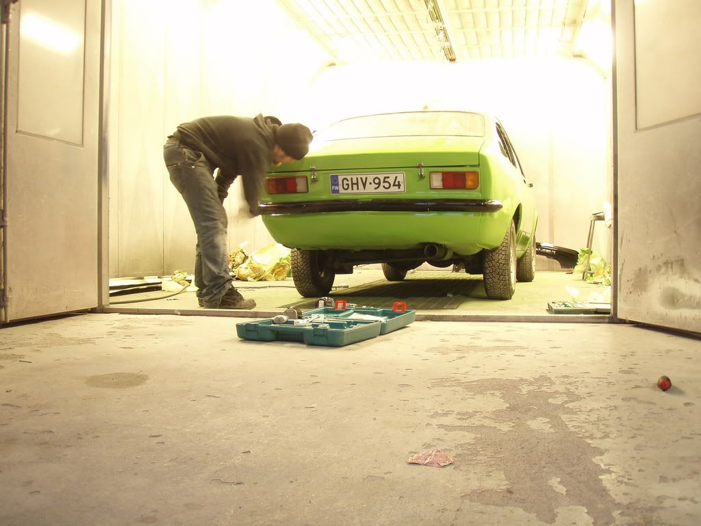 maanataina hitsasin autosta takarunkopalkin, jousien yläpäät, helman, hieman takaluukkua, keulapalan, pakoputken ja muutamia muita saumausta vaativia kohteita.