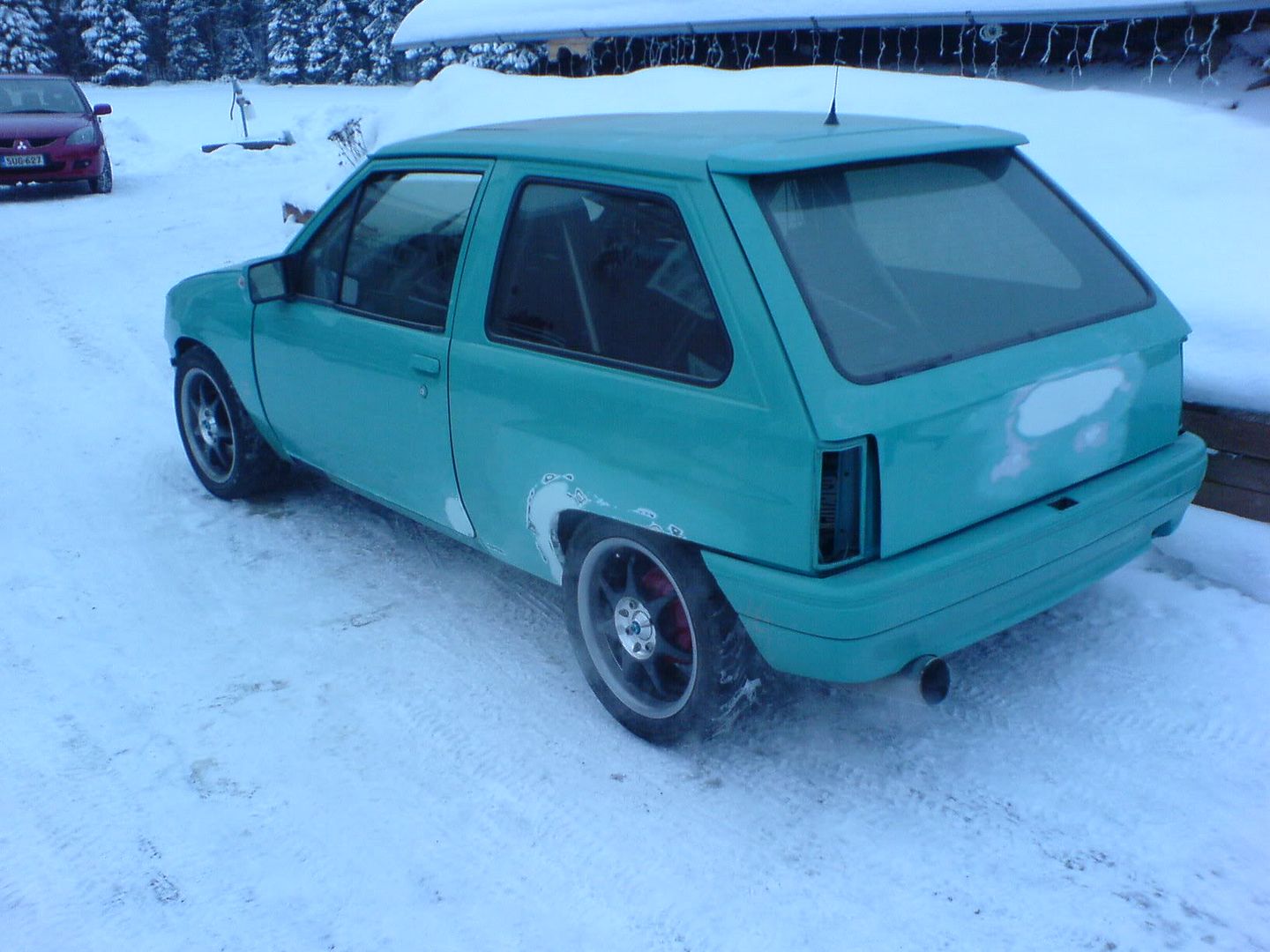 ehkä nyt?eli auto tuli saksasta viime kesän lopussa ja talvella sitä on hitsailtu ja maalattu ja pataan vaihettiin laakereita ja tiivisteitä ja sellasta pientä ja tolta se näytti tullessaan